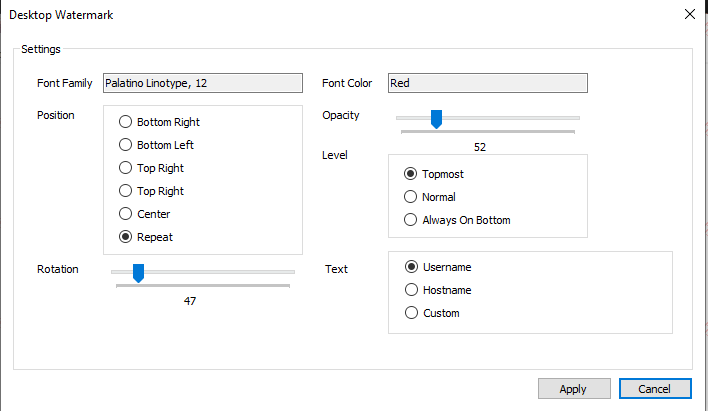 This is a windows application where it creates a watermark on your/organization desktop(s) which discourages users while taking screenshots and sharing sensitive documents.
